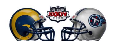 Super Bowl XXXIV – St. Louis Rams 23, Tennessee Titans 16. Played on January 30, 2000 at the Georgia Dome in Atlanta, Georgia. Kevin Dyson ONE INCH from winning the game in last second. MVP Kurt Warner. Favorite Rams by 7. National anthem Faith Hill. Halftime show Phil Collins, Christina Aguilera, Enrique Iglesias, Toni Braxton, and Edward James Olmos. Attendance 72,625. Network ABC. Announcers Al Michaels and Boomer Esiason. Nielsen ratings 43.3. est. 88.5 million viewers. Market share 63. Cost of 30-second commercial US $1.1 million. Kurt Warner 24/45 414 2 0, Tory Holt 7 109 1, Isaac Bruce 6 162 1, Steve McNair 22/36 214 0 0, Eddie George 28 95 2